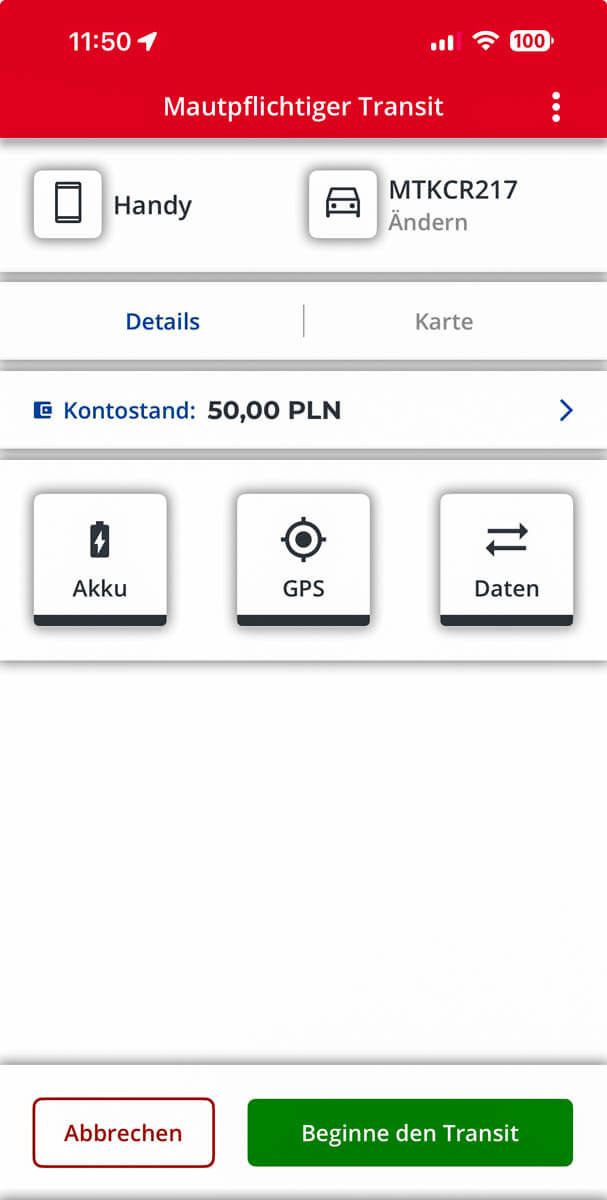 Wir haben uns vorab über die Webseite des Mautsystems angemeldet. Alternativ könnt ihr auch die e-TOLL PL App herunterladen. Es ist wichtig, das vor der Fahrt zu erledigen, damit ihr keine Strafen riskiert.