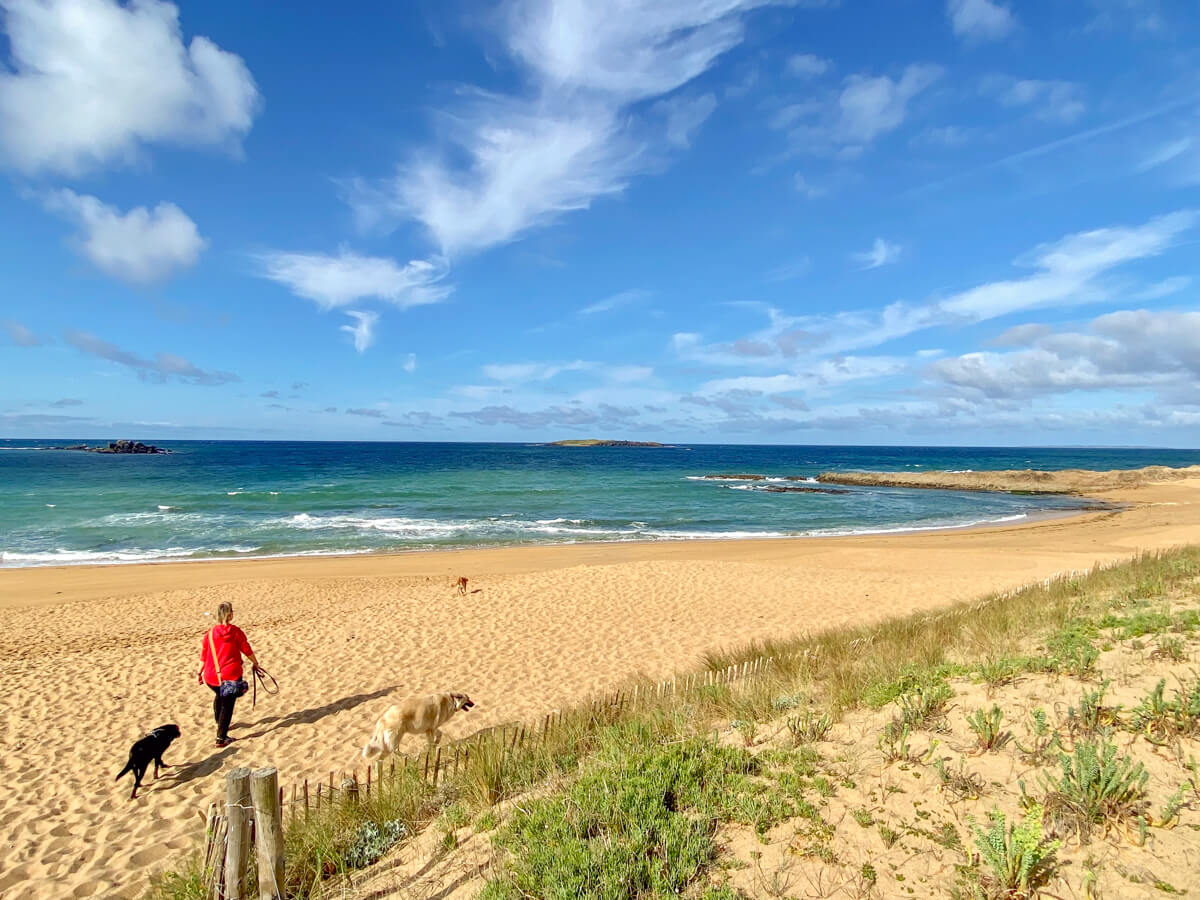 Eintauchen in eine andere Welt. Breite Dünengürtel, eine vielfältige Flora und Fauna und ein 7 km langer Strand – genug Platz, um mit den Hunden unvergessliche Momente zu erleben. Dazu noch zahlreiche, geschichtsträchtige Orte in der Umgebung, die den unverwechselbaren bretonischen Flair widerspiegeln.