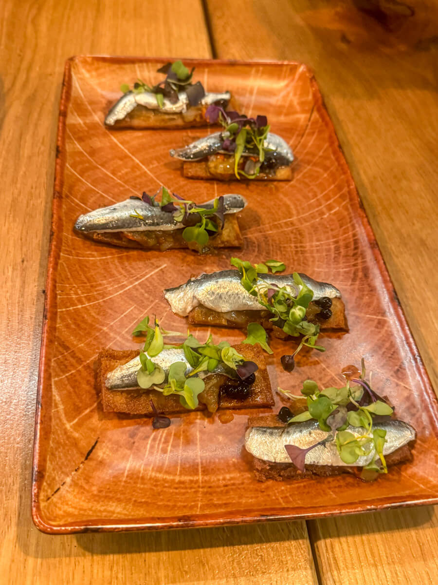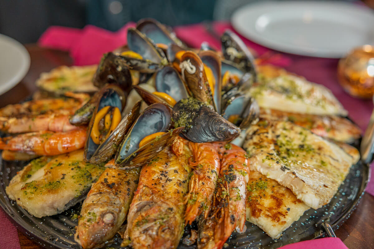 Neben frischem Fisch, Sepia, Pulpo, Garnelen, Schinken und Salami darf auch der cremige Burgos-Käse nicht fehlen – am besten mit Olivenöl, Knoblauch, Avocado und geriebenen Tomaten genossen.